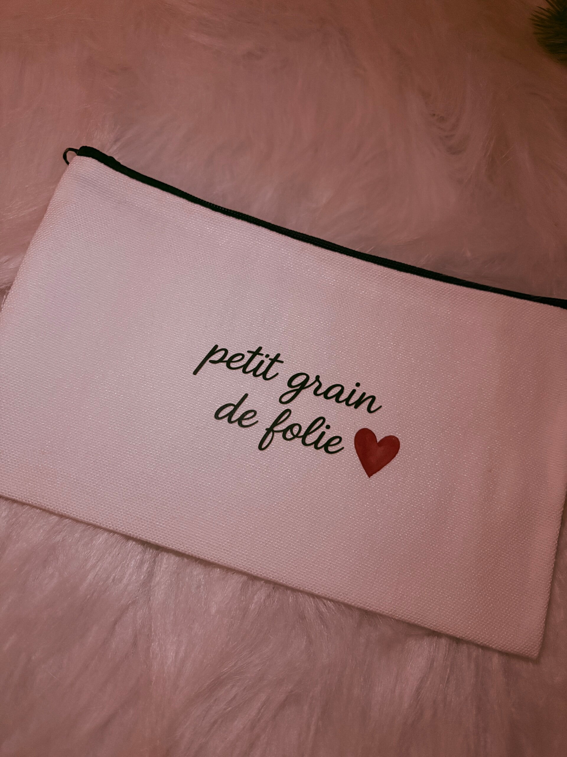 Cette pochette Petit Grain de Folie t’accompagne avec chic et douceur, que ce soit pour ton maquillage, tes clés ou tes petits trésors.